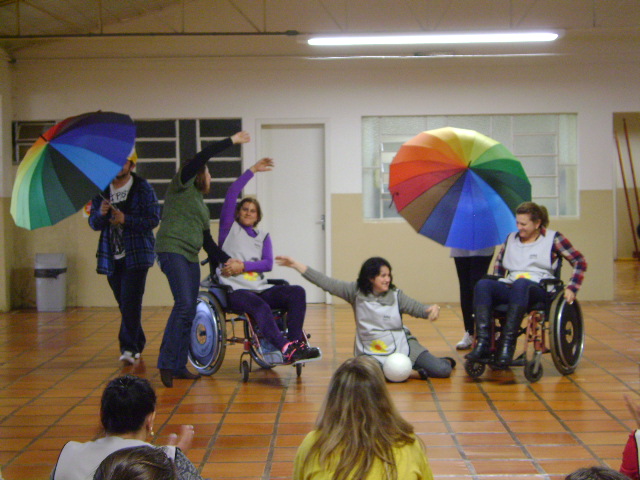 Este texto apresenta resultados de intervenções realizadas junto aos professores do ensino especializado e da rede pública estadual de ensino, tendo por objetivo promover espaços de vivências e discussões sobre a dança. O estudo se desenvolveu a partir dos pressupostos da pesquisa-ação (THIOLLENT, 2007). As ações ocorreram no período de maio a outubro de 2011 envolvendo cinco instituições, sendo três no âmbito do ensino especializado para o trabalho com pessoas com deficiência e duas escolas da rede estadual de ensino. A análise dos dados sinaliza que as oficinas contribuíram para um processo de construção de um novo olhar para o corpo com deficiência e para a dança, e que esta prática pode sensibilizar para a beleza de todos os corpos, nas suas singularidades e potencialidades.