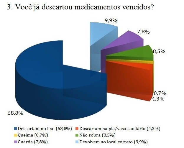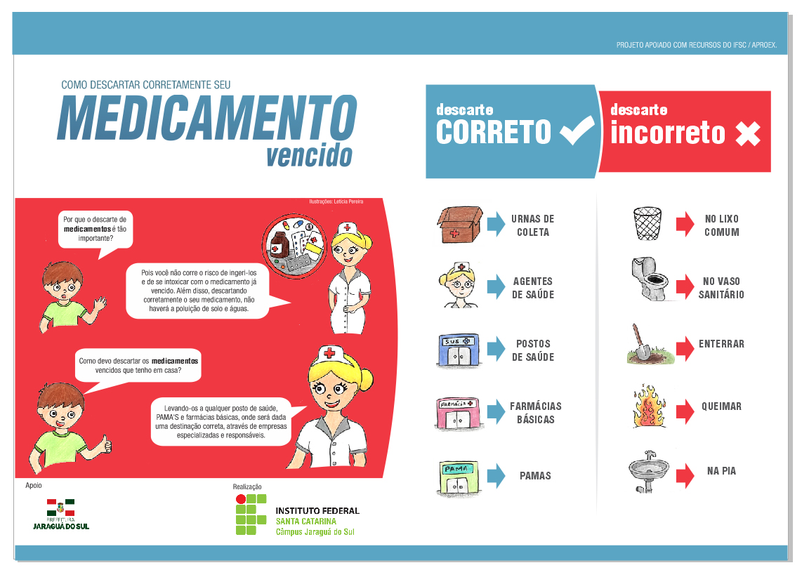 This article was developed through scientific research initiation project “Conectando Saberes” in the IFSC Chemistry Technician course (Integrated mode), Jaragua do Sul campus. In research, which comprised 74% of the sample collected in the urban city terminal discarded their medicines inappropriately and that the city provides enough structure so that proper disposal is made. So, aimed to raise awareness and carry out dissemination on proper disposal of expired drugs with the support of the municipal government. Therefore, he ministered to talk to city health officials, were produced flyers and informative posters and elaborated Ten ballots distributed in central and peripheral parts of the city. They were collected approximately 18,000 medicines, so it is apparent that by integrating simple disclosure mechanisms there was a significant population movement towards the correct disposal of expired medications.