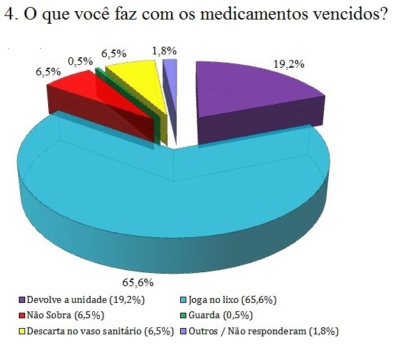 - Gráfico, 4. O que você faz com os medicamentos vencidos? (Português (Brasil))