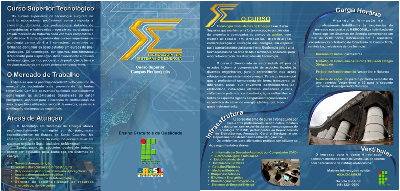 Instituto Federal de Educação, Ciência e Tecnologia de Santa Catarina, Curso Superior de Tecnologia em Sistemas de Energia, Concurso, Logomarca, Questionário avaliativoResumo