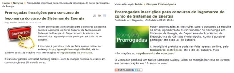 - Figura 7 – Publicação do concurso da logomarca do CSTSE nos sites do IFSC.