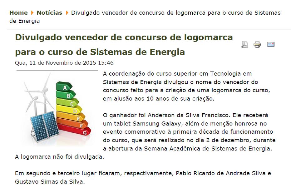 - Seleção da nova logomarca do curso superior de tecnologia em sistemas de energia