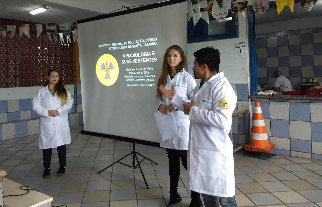 A extensão universitária é de extrema importância, tanto para os acadêmicos quanto para a comunidade. O relato em questão retrata um projeto de extensão, onde os graduandos da terceira fase do CST em Radiologia apresentam a Radiologia e o IFSC, para alunos do ensino médio em uma instituição pública. Com base na experiência conclui-se que a ação da extensão permite a troca de conhecimentos colaborando na formação acadêmica dos discentes.