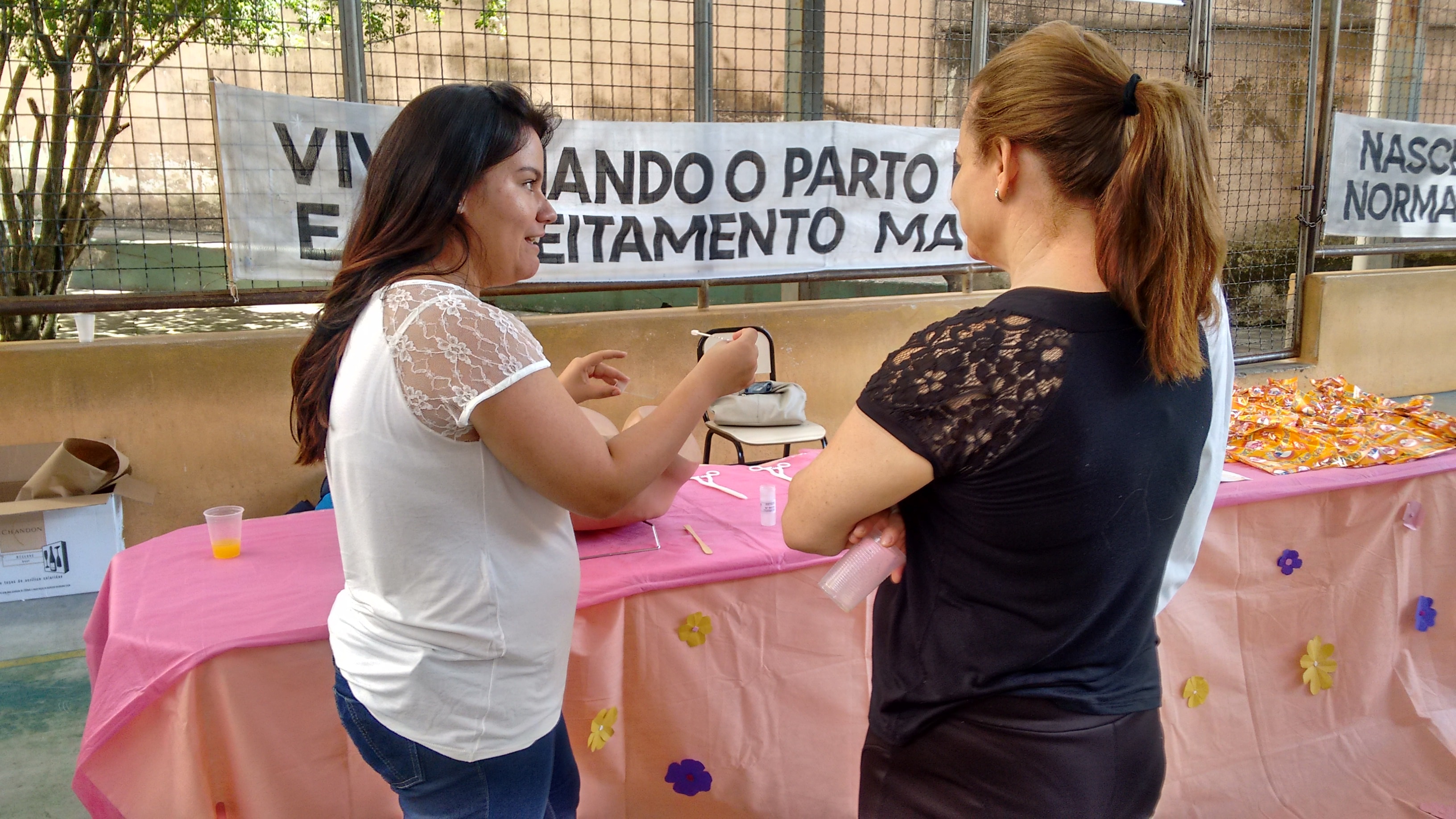 Trata-se de um relato de experiência sobre uma ação extensionista realizada por duas acadêmicas de Enfermagem no ano de 2016. Foram realizadas discussões em um estande organizado por acadêmicas de Enfermagem para as gestantes participantes do “Encontro Municipal de Gestantes Mãe Divinopolitana” sobre temas relacionados à saúde da gestante e da criança. Foram realizados três momentos de educação em saúde de abordagem coletiva, sendo eles: uma roda de conversa sobre a importância do exame citopatológico do colo do útero e prevenção de Infecções Sexualmente Transmissíveis (ISTs) durante a gestação; simulação de um parto de cócoras e uma roda de conversa sobre o aleitamento materno e cuidados com o recém-nascido. Essa experiência propiciou o estreitamento entre universidade e comunidade, pela possibilidade de atuar em um espaço fora da universidade, de unir teoria à prática de forma interdisciplinar e por aprimorar o olhar e atenção às necessidades de saúde de usuários por meio do uso de metodologias ativas.