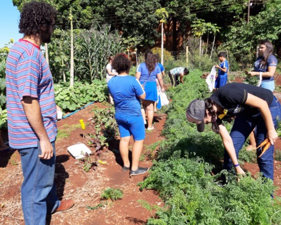 O envolvimento com atividades de horta é uma excelente oportunidade para recreação educativa, além de propiciar conhecimentos e despertar habilidades. Assim, o trabalho teve por objetivo envolver os adolescentes em oficinas de cultivo e manutenção da horta, promover a autoconfiança e fortalecimento de vínculos afetivos. Foram realizadas seis oficinas, onde os participantes tiveram contato com o solo, às plantas e as práticas de cultivo agroecológicas. O trabalho contribuiu para a valorização do trabalho em equipe, compreensão sobre a produção de alimentos e hábitos saudáveis, permitindo aos adolescentes a experiência de cultivar hortaliças orgânicas que chegaram à mesa de suas famílias. Promoveu o envolvimento direto da universidade com a comunidade e atuação efetiva dos graduandos em problemas reais, bem como o estímulo ao olhar mais solidário para o próximo e maior visibilidade da instituição de ensino junto à sociedade.