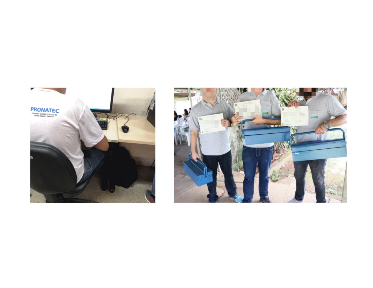 - Figura 2: Etapas do projeto Alvorada: (a) realização do curso e (b) formatura.